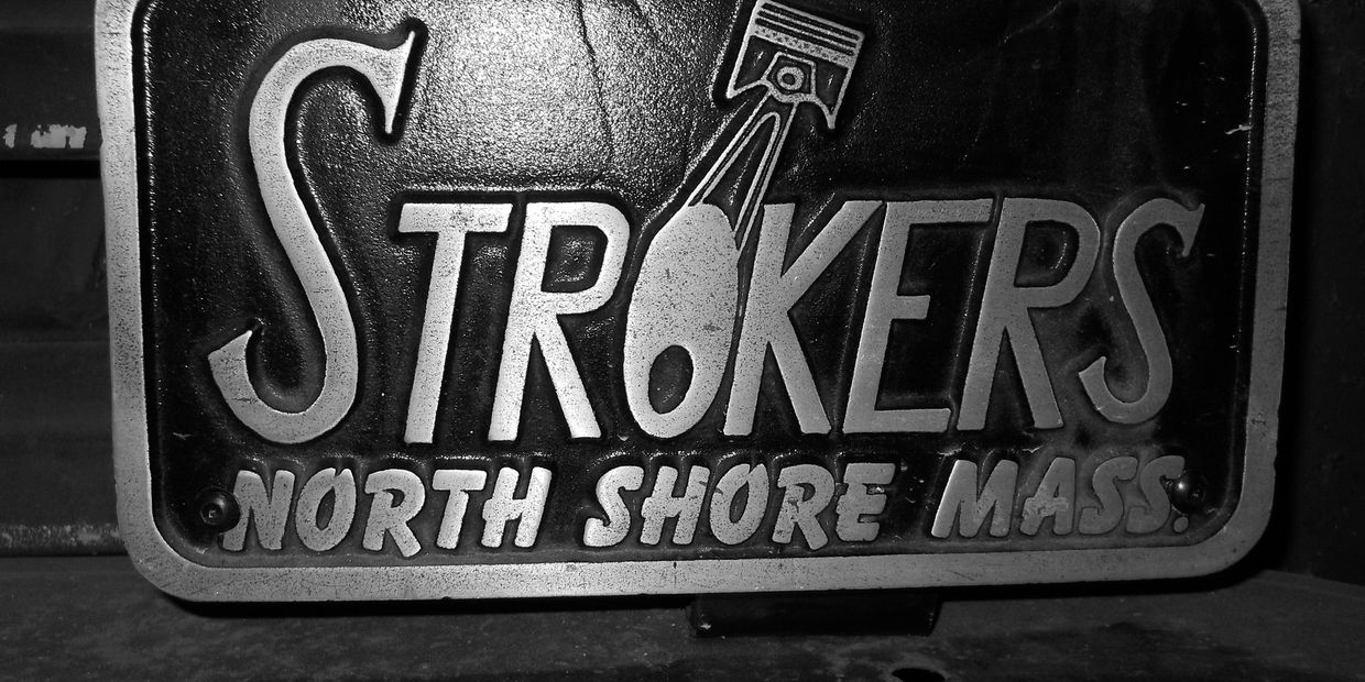 That following week-end, John Lyon, Joe Orlando and I were discussing what had happened at my shop one evening - and I think it was John Lyon who suggested that we should start our own club. After a short discussion we came to the conclusion that we’d call ourselves the Strokers (little play on words, almost as a joke). The plan was to form a club that had “no rules" and let custom cars be admissible to the club. We came up with a 1/2 dozen names of people we thought we could get to join the new club instantly. We wanted as close to ten members as possible as we had to buy a minimum of 10 plaques for Dennis O’Brien to make them up. Once we spoke with Dennis, he informed us that there were other clubs with that name. So at that point we added 'Northshore Mass' to the plaques and the name of the club.